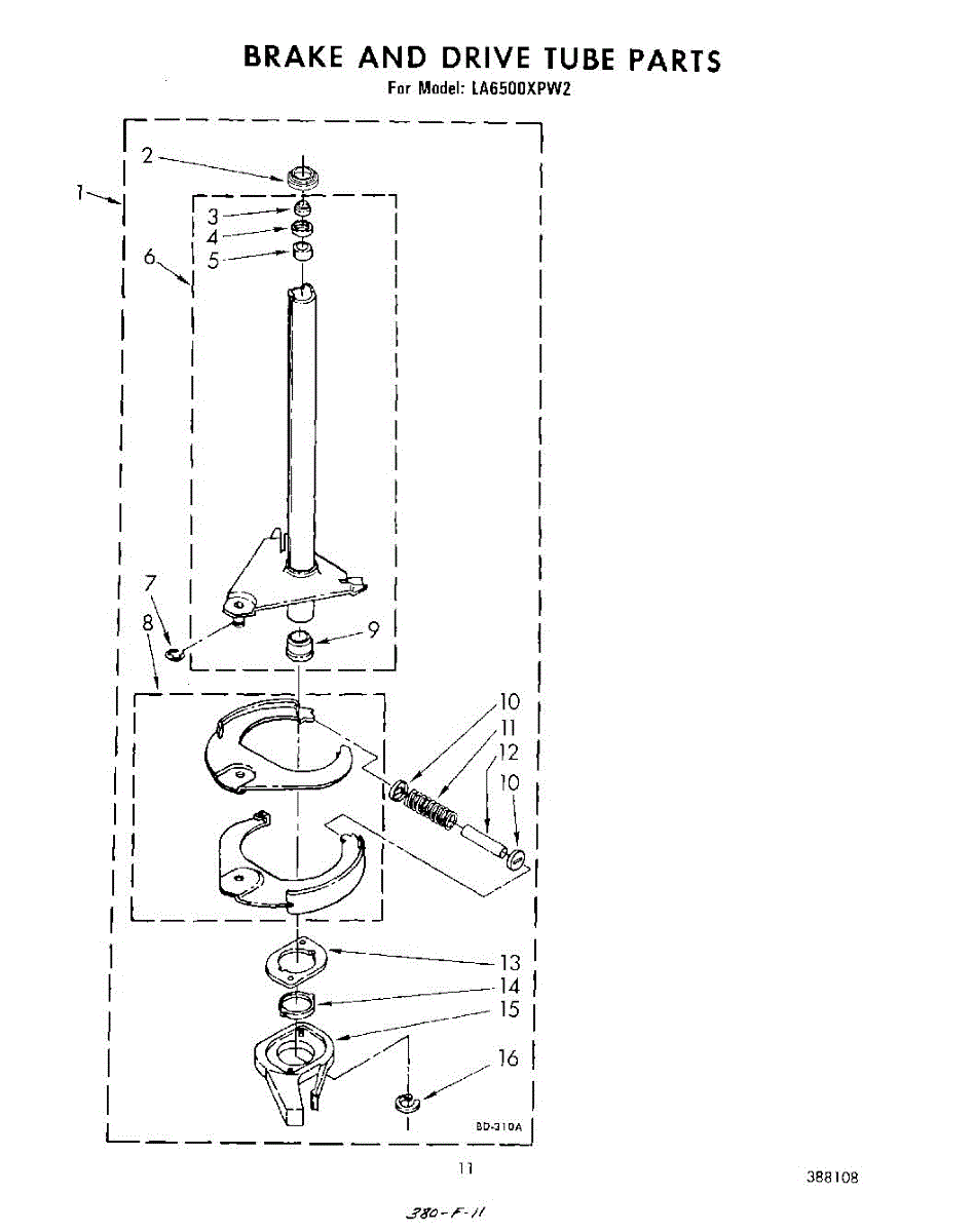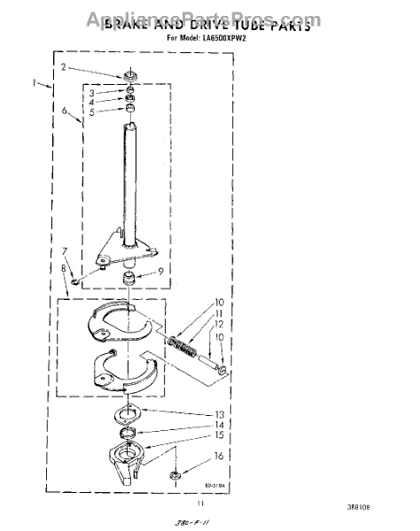 Parts for Whirlpool LA6500XPW2: 09 - Brake And Drive Tube Parts