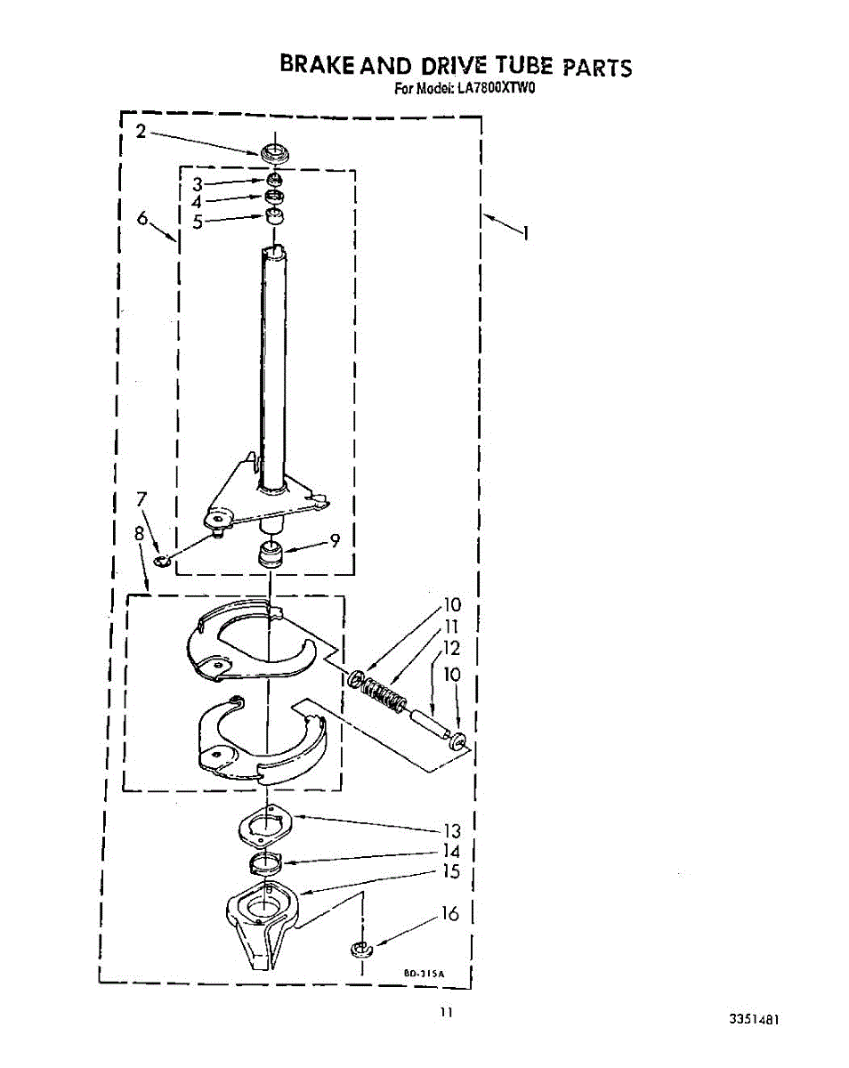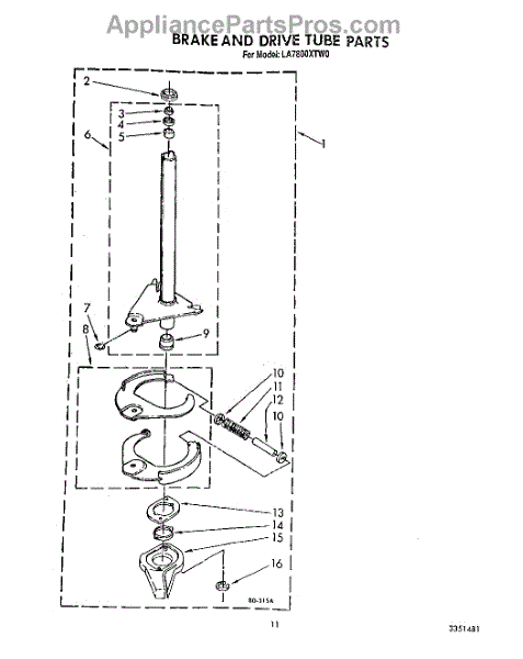 Parts for Whirlpool LA7800XTF0: 09 - Brake And Drive Tube Parts