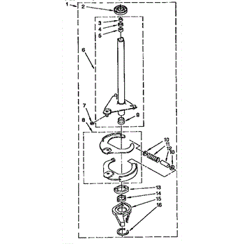 Supports the spin basket and reduces friction during operation. Replace if you hear grinding, thumping, or squealing noises during spin cycle. Confirm fit.