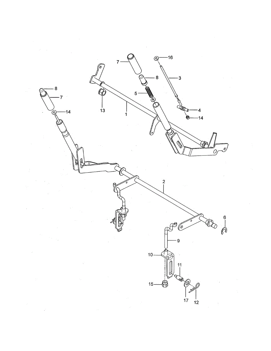 Deck lift paint weldment assembly for rear-engine riding mowers. Replaces cracked, rusted, or damaged weldment components in the deck lift mechanism.