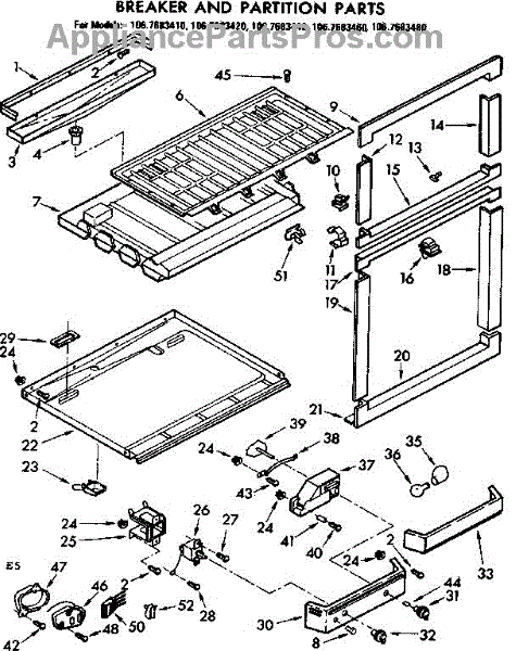 Parts for Kenmore 106.7683480 (1067683480, 106 7683480): Breaker And Parition Parts