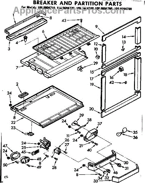 Parts for Kenmore 106.8604710 (1068604710, 106 8604710): Breaker And Partition Parts