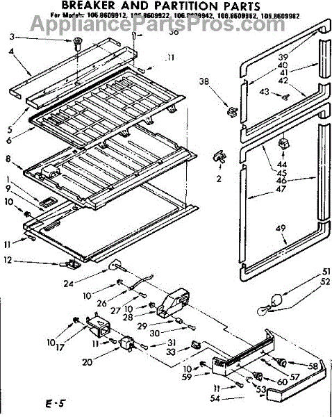 Parts for Kenmore 106.8609982 (1068609982, 106 8609982): Breaker And Partition Parts