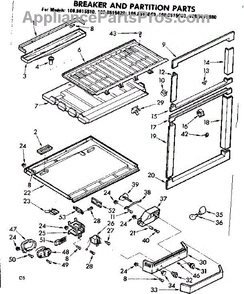 Parts for Kenmore 106.8615680 (1068615680, 106 8615680): Breaker And Partition Parts