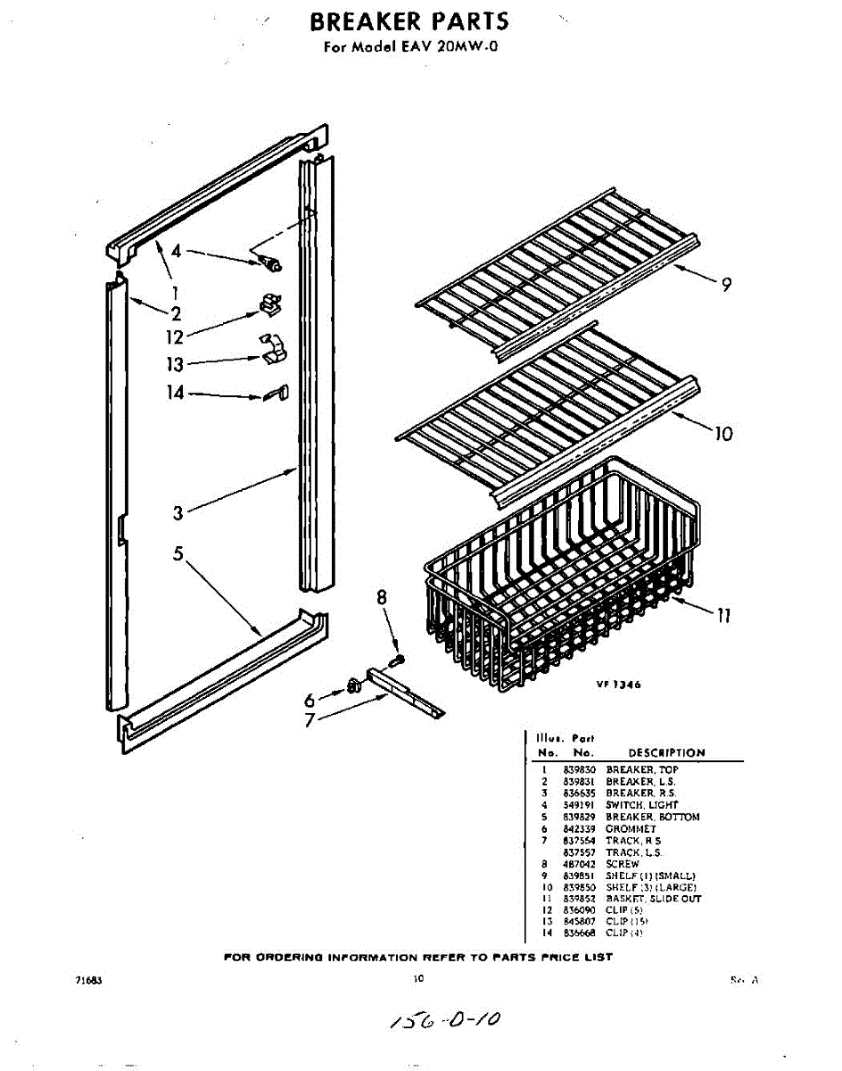 Parts for Whirlpool EAV20MW0: 10 - Breaker Parts