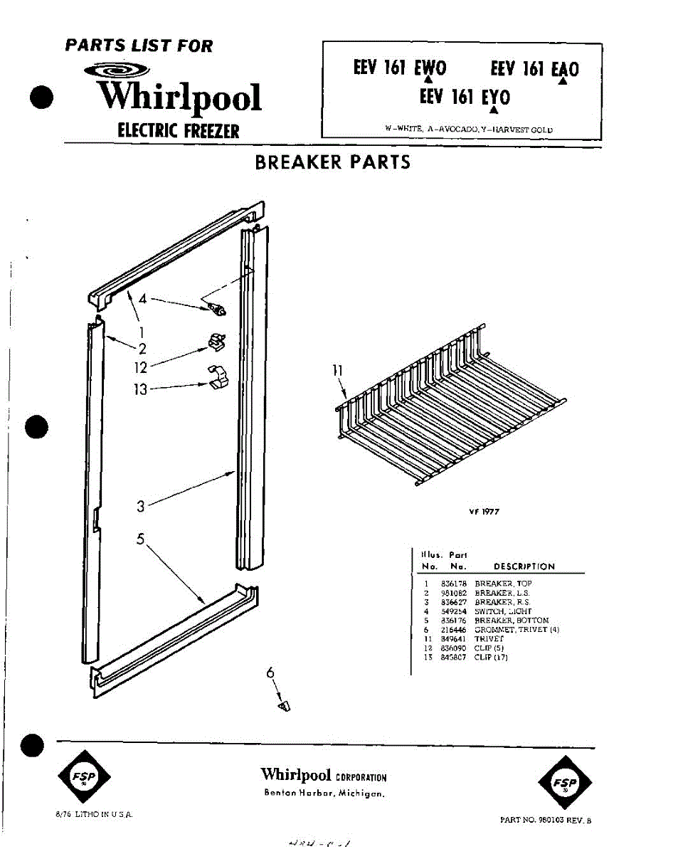 Parts for Whirlpool EEV161EA0: 01 - Breaker Parts