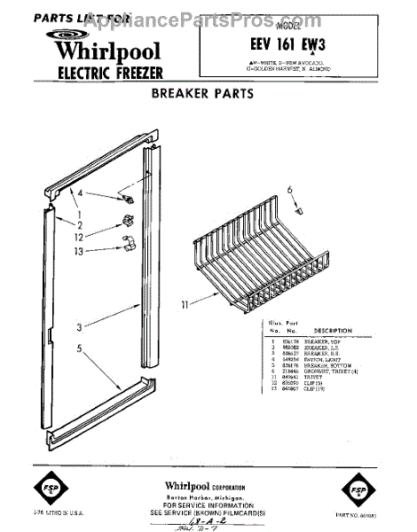 Whirlpool Freezer Parts
