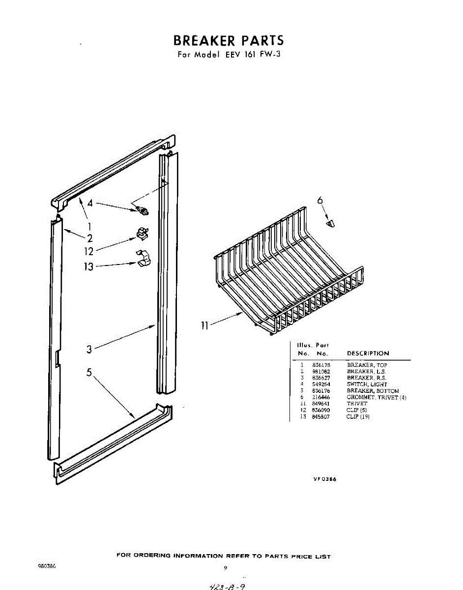 Parts for Whirlpool EEV161FA3: 09 - Breaker Parts