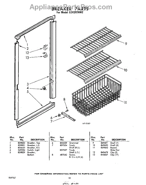 Parts for Whirlpool EEV202NW2: 10 - Breaker Parts