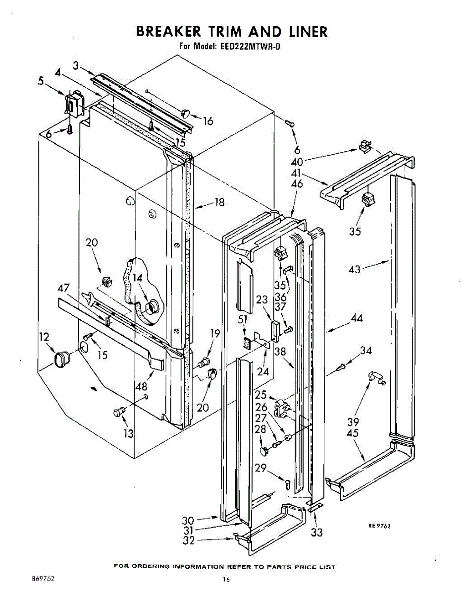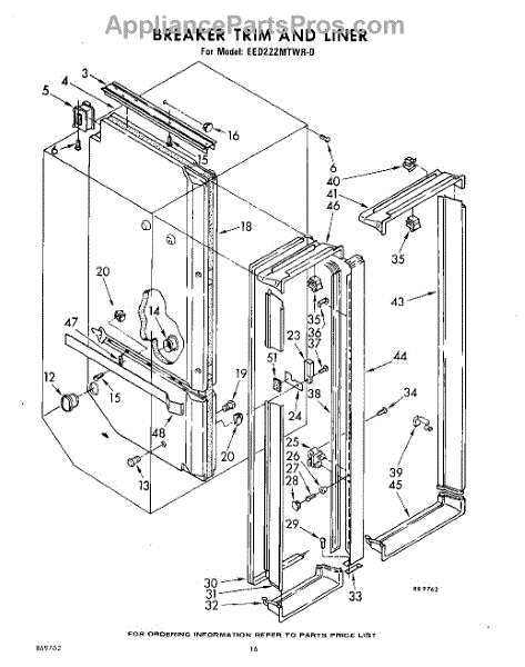 Parts for Whirlpool EED222MTWR0: 16 - Breaker Trim And Liner Parts