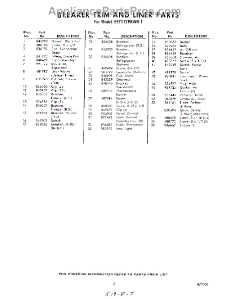 Parts for Whirlpool EET172PKWR1: 07 - Breaker Trim And Liner Parts