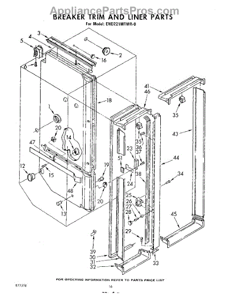 Parts for Whirlpool EHD221MTWR0: 16 - Breaker Trim And Liner Parts