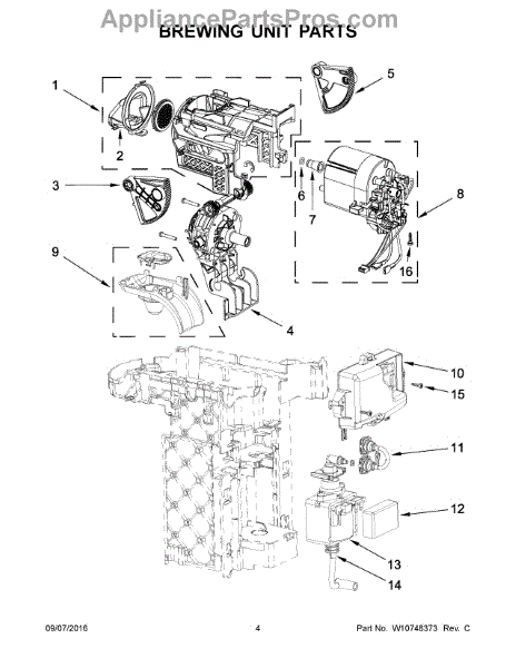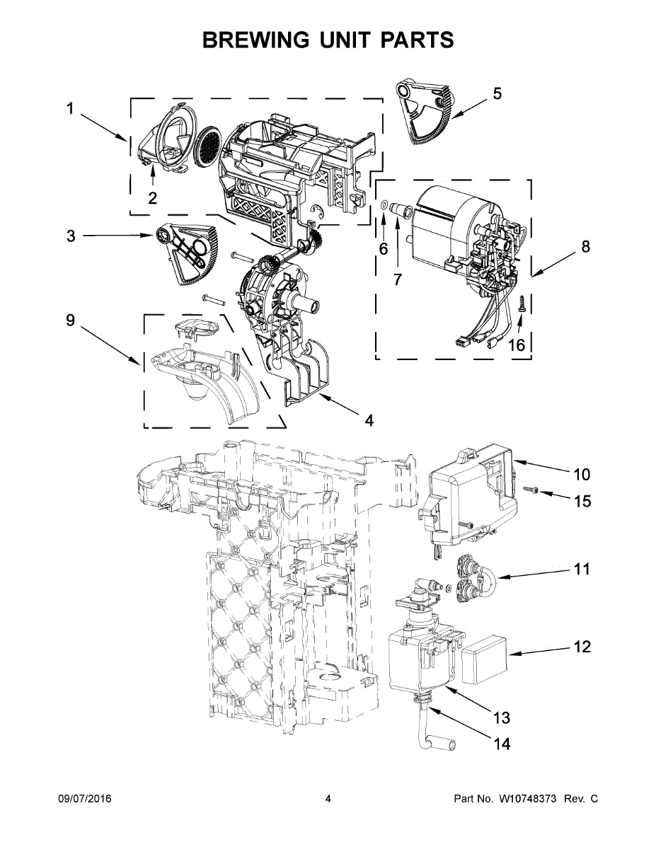 Parts for Whirlpool 5KES0503SER0: 03 - Brewing Unit Parts