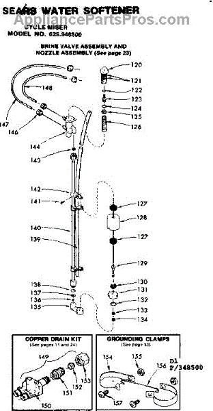 Parts for Kenmore 625.348500 (625348500, 625 348500): Brine Valve Assembly & Nozzle Assembly Parts