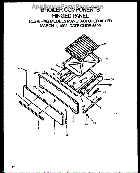 Parts for Caloric RMS395: Broiler Componenents Hinge Panel (Rms269) (Rls269) Parts