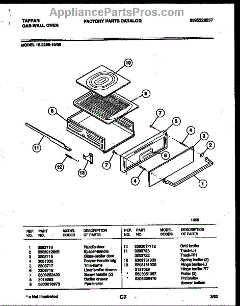 Parts for Frigidaire 12-2299-10-05: 05 - Broiler Drawer Parts