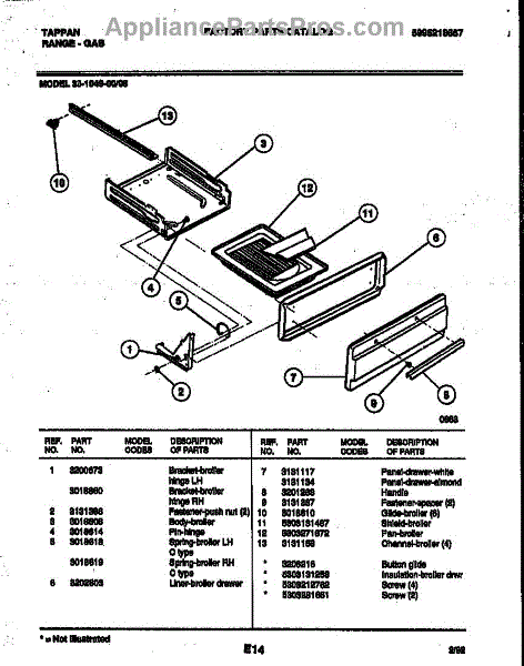 Parts for Frigidaire 30-1049-23-06: 04 - Broiler Drawer Parts
