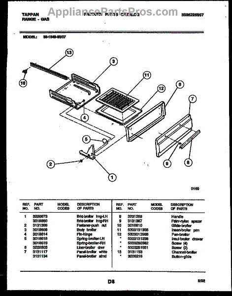 Parts for Frigidaire 30-1049-23-07: 04 - Broiler Drawer Parts