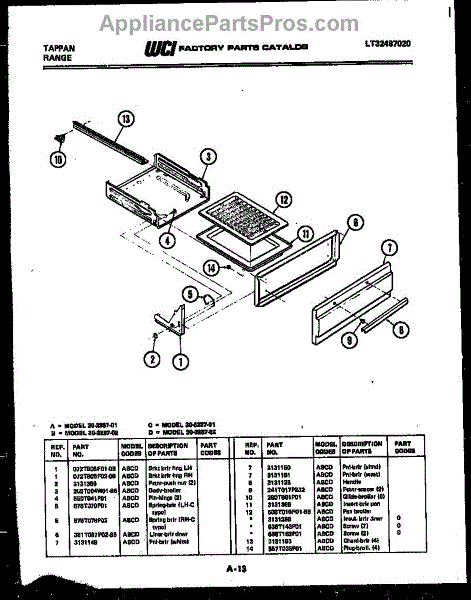 Parts for Frigidaire 30-2237-00-01: 05 - Broiler Drawer Parts