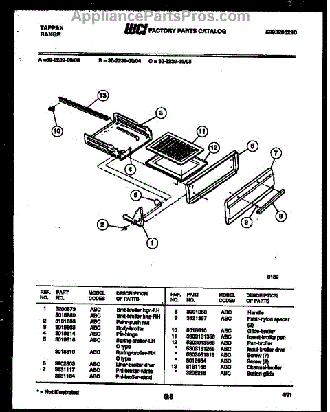 Parts for Frigidaire 30-2239-00-04: 04 - Broiler Drawer Parts