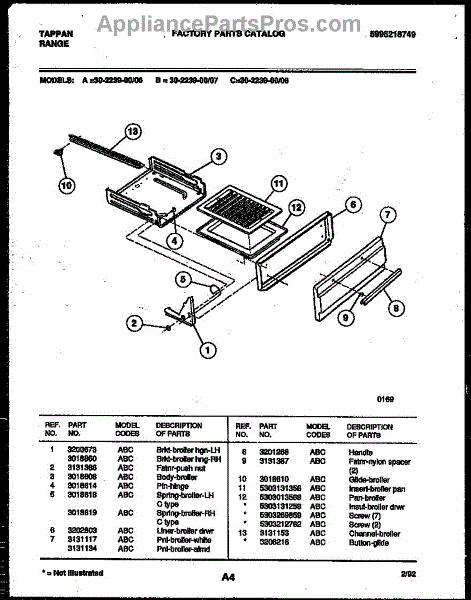 Parts for Frigidaire 30-2239-23-06: 04 - Broiler Drawer Parts