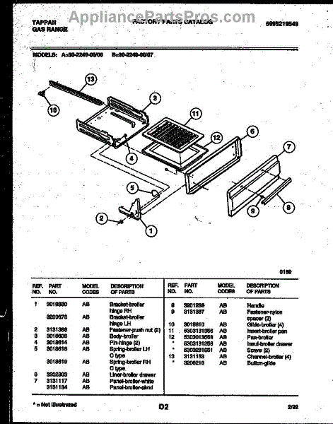 Parts for Frigidaire 30-2249-23-07: 04 - Broiler Drawer Parts