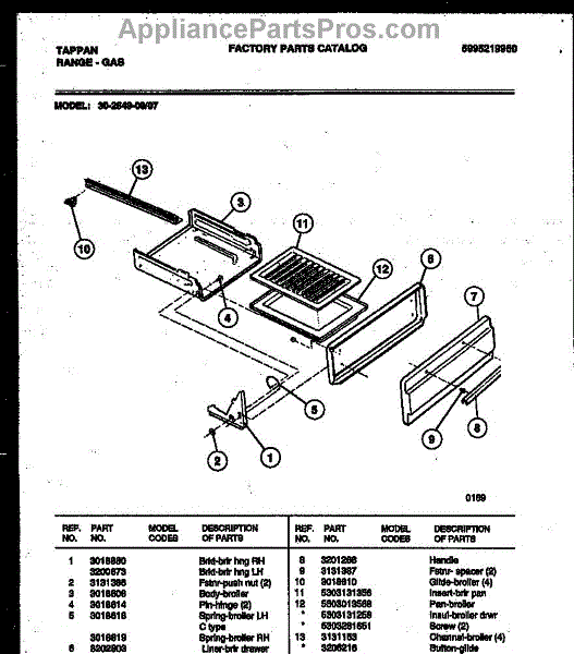 Parts for Frigidaire 30-2549-23-07: 04 - Broiler Drawer Parts