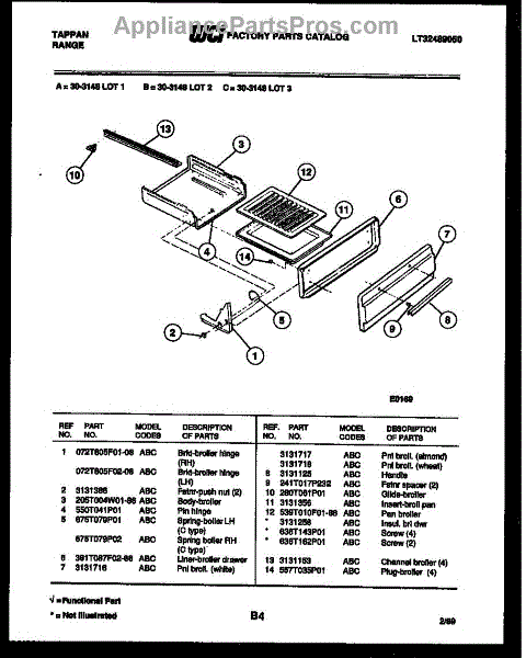 Parts for Frigidaire 30-3148-00-03: 04 - Broiler Drawer Parts