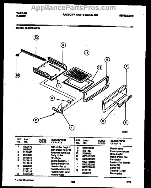 Parts for Frigidaire 30-3352-00-01: 05 - Broiler Drawer Parts