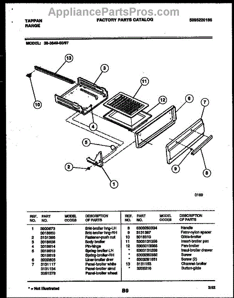 Parts for Frigidaire 30-3649-23-07: 03 - Broiler Drawer Parts