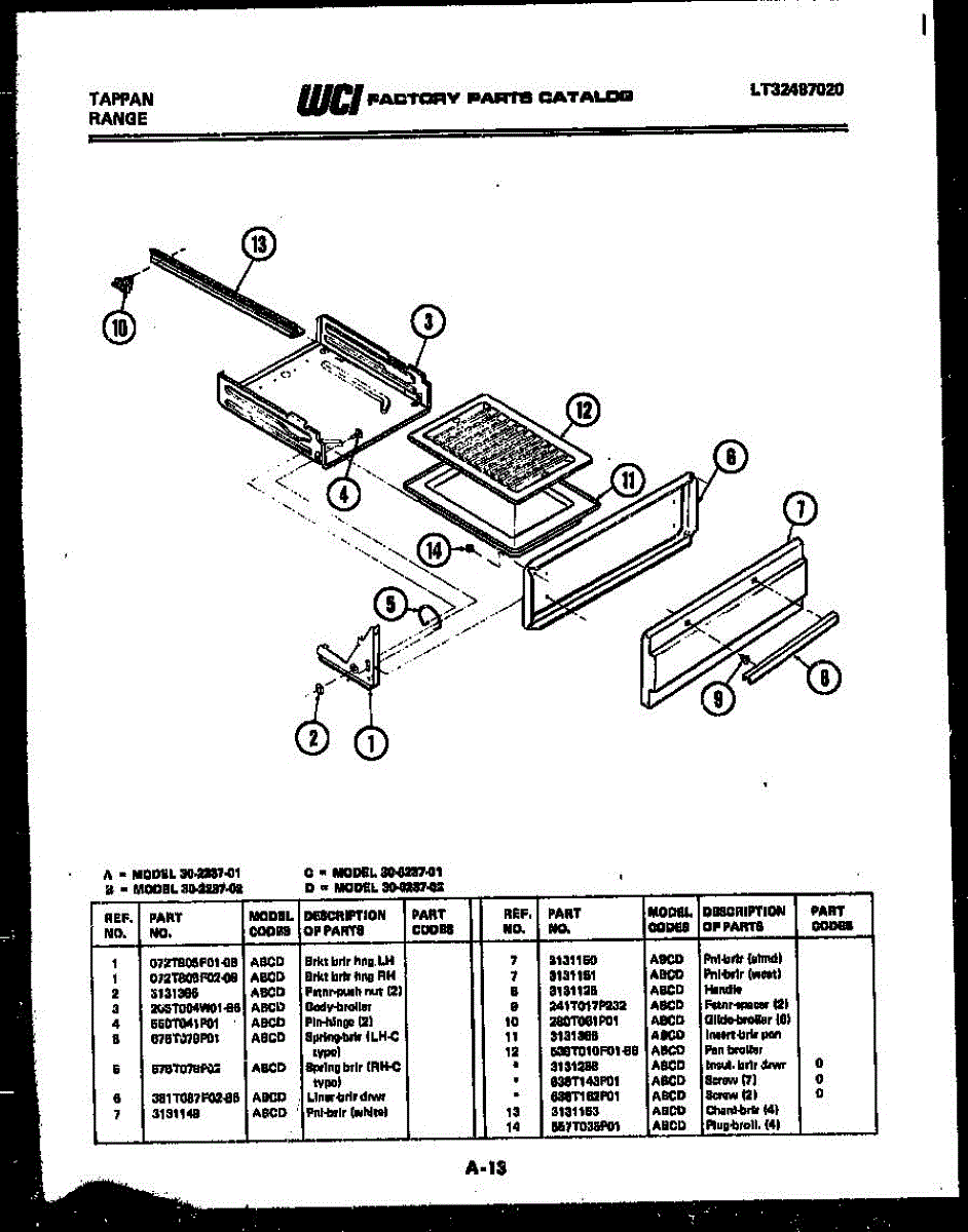 Parts for Frigidaire 30-6237-66-01: 05 - Broiler Drawer Parts