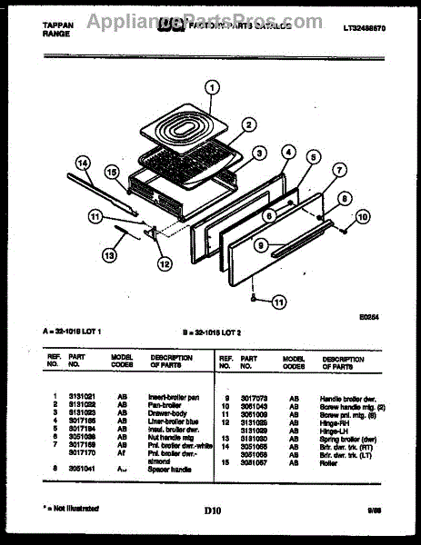Parts for Frigidaire 32-1018-00-01: 03 - Broiler Drawer Parts