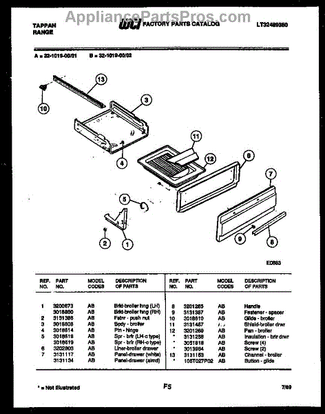 Parts for Frigidaire 32-1019-00-01: 05 - Broiler Drawer Parts