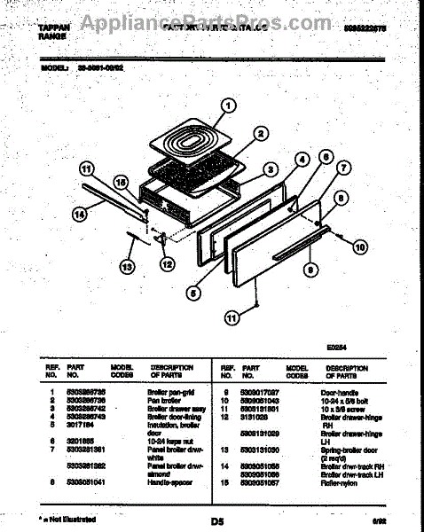 Parts for Frigidaire 36-3061-00-02: 05 - Broiler Drawer Parts
