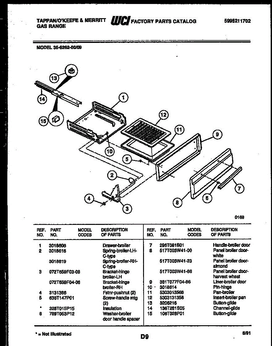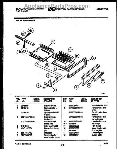 Parts for Frigidaire 36-6262-00-09: 07 - Broiler Drawer Parts