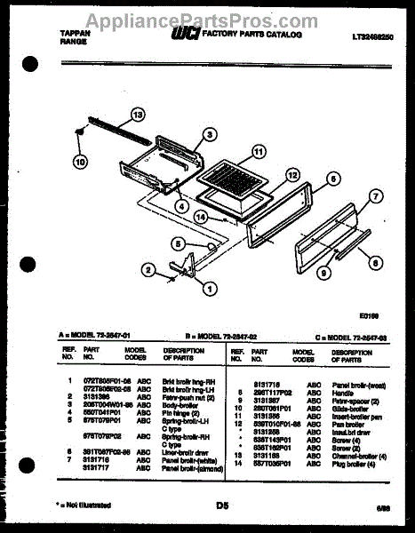 Parts for Frigidaire 72-2547-23-01: 05 - Broiler Drawer Parts