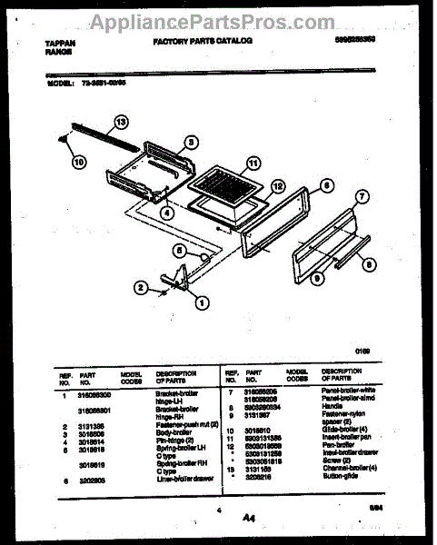 Parts for Frigidaire 72-3651-00-05: 04 - Broiler Drawer Parts