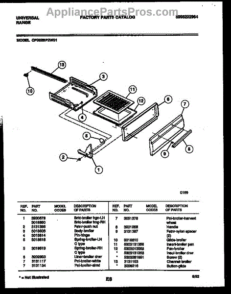 Parts for Frigidaire CP302BP2W1: 04 - Broiler Drawer Parts