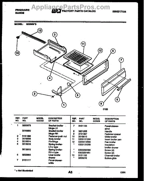 Parts for Frigidaire G30NW5: 05 - Broiler Drawer Parts