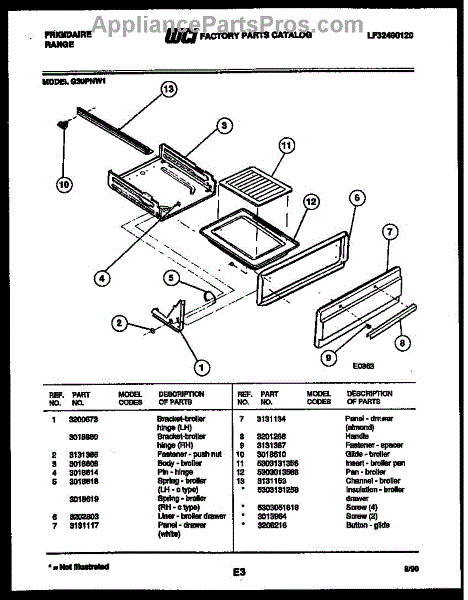 Parts for Frigidaire G30PNW1: 05 - Broiler Drawer Parts