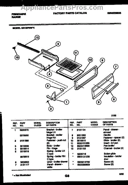 Parts for Frigidaire G31BPNW4: 04 - Broiler Drawer Parts