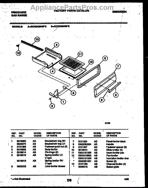 Parts for Frigidaire GCG34BNW6: 04 - Broiler Drawer Parts