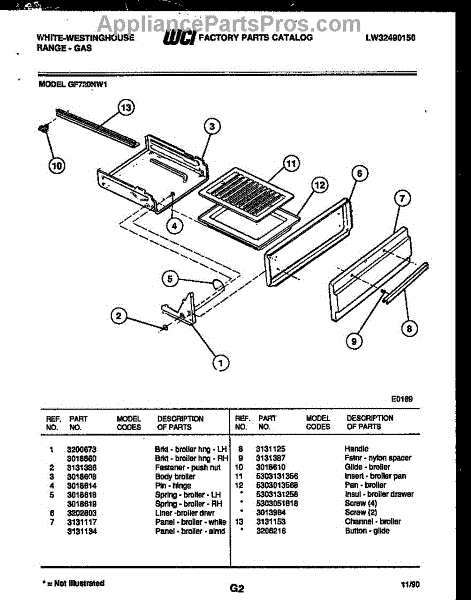 Parts for Frigidaire GF720NW1: 05 - Broiler Drawer Parts