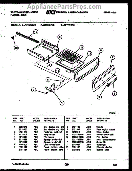 Parts for Frigidaire GF720NW4: 05 - Broiler Drawer Parts