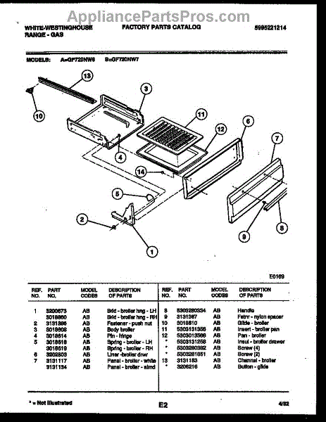 Parts for Frigidaire GF720NW7: 05 - Broiler Drawer Parts