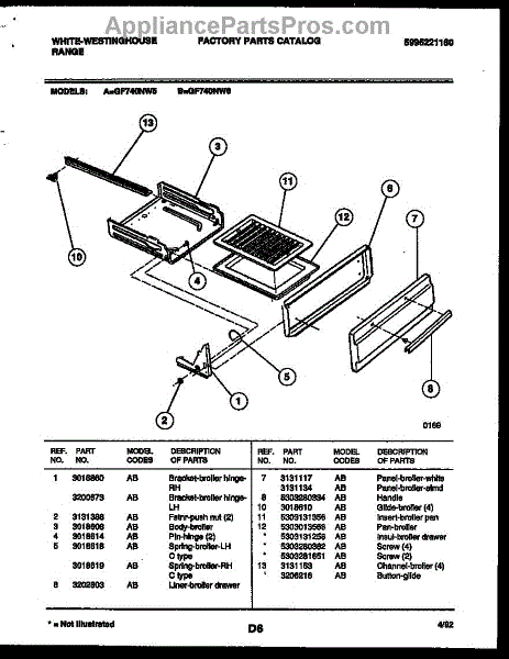 Parts for Frigidaire GF740NW6: 05 - Broiler Drawer Parts
