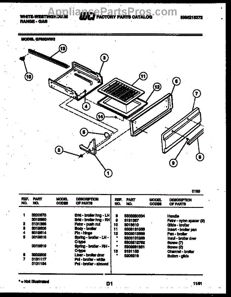 Parts for Frigidaire GF830NW3: 04 - Broiler Drawer Parts