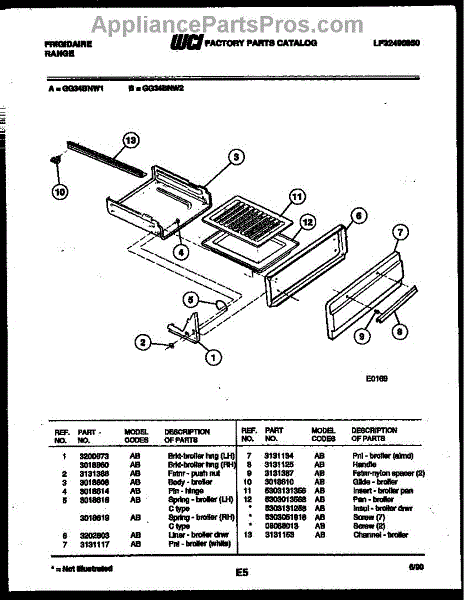 Parts for Frigidaire GG34BNW1: 04 - Broiler Drawer Parts