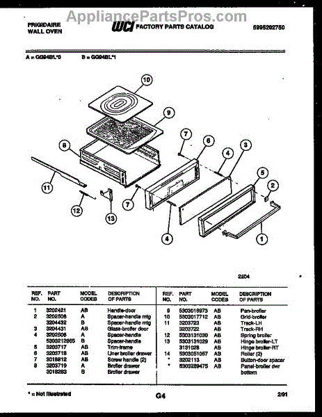 Parts for Frigidaire GG94BLW0: 05 - Broiler Drawer Parts
