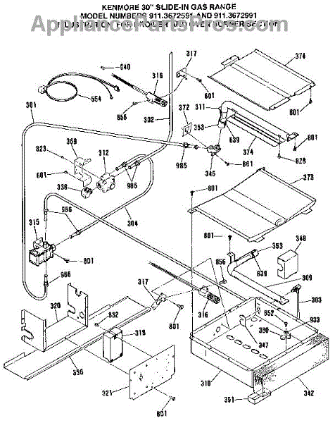 Parts for Kenmore 911.3672991 (9113672991, 911 3672991): Broiler And Oven Burner Section Parts